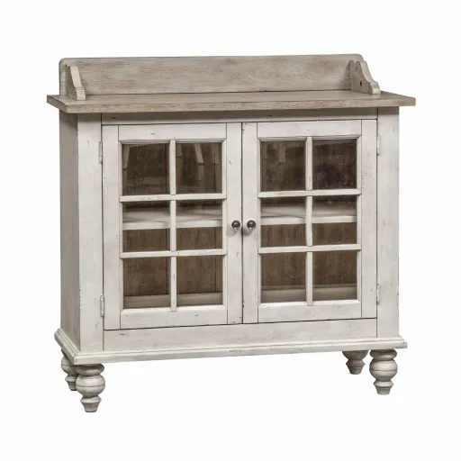 Spruce up your dining room with the stylish storage this server has to offer. It features a two-toned finish, turned tulip feet, and a weathered finish for a relaxed vintage feel. Plus, the wood framed glass doors open up to reveal inner shelving that's perfect for display.