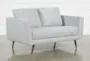 Introducing the Ginger Grey Fabric 59" Loveseat, a chic addition to any living room or dorm space. This Mid-Century Modern loveseat combines style and comfort with its firm seating and tufted design. The loose reversible back cushions and track arms provide both support and flexibility.