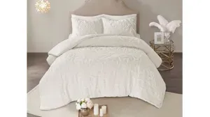 The Laetitia Comforter Set provides a soft and alluring update to your bedroom d_cor. This ivory comforter features a 100% cotton face and reverse with an elegant chenille medallion design centered on top of the bed. The matching shams beautifully coordinate with the cotton comforter to create a stunning Boho and globally inspired look. Medium fill weight for all season use, this cotton chenille comforter set is machine washable for easy care and adds a lovely touch to your space.