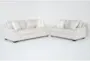 The Tallulah Beige Fabric Birch 2 Piece Sofa & Loveseat Set is a perfect addition to your living room, offering a blend of comfort and style. This set includes a firm sofa and loveseat, both upholstered in durable 100% polyester fabric. The track arms and tapered legs add a touch of casual sophistication to any space.