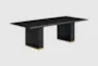The Chelsea Black Wood 96" Rectangular Black Oak Dining Table is a stunning centerpiece for any modern dining space. Crafted from high-quality oak, this table combines sleek design with robust construction, making it both stylish and durable. Its black finish and rectangular shape add a touch of contemporary elegance, perfect for hosting gatherings and family meals.