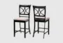 Ross Sand Fabric Upholstered + Espresso Brown Finished Wood 25" Counter Height Stool Set Of 2 | Oak | Armless