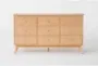 Enhance your bedroom with the Mariko Natural Wood 34" 9 Drawer Dresser, a perfect blend of modern style and functional design. The dresser's wheaten color adds a soft, neutral tone that complements any decor. Made with an ash veneer and solid birch, this dresser provides ample storage with its nine spacious drawers.