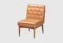 Introducing the Riordan Mid-Century Modern Tan Faux Leather Upholstered and Walnut Brown Wood Dining Chair, a perfect blend of style and comfort for your dining space. This chair features a sleek mid-century modern design, making it a stylish addition to any home. The tan faux leather upholstery and walnut brown wood finish create a warm and inviting look.