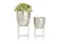 Enhance your living space with the sleek elegance of the 6" 5" Silver Metal Indoor Outdoor Planter with Removable Stand Set of 2. These planters are designed to offer effortless luxury with their minimalistic design and clean lines. Perfect for both indoor and outdoor use, they bring a touch of modern sophistication to any environment.