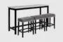 Enhance your living space with the Janie Grey Black Wood 4 Piece Console Bar Set. Designed with a contemporary style, this bar set features a sleek grey color that complements any decor. The solid rubberwood construction ensures durability, while the faux marble tabletop adds a touch of sophistication.