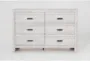 The Baylor White 6 Drawer Dresser brings modern flair and ample storage to your bedroom. Crafted from rubberwood with a sleek paper veneer finish, this dresser's soft white color complements any decor. The six spacious drawers are perfect for organizing clothes and accessories.