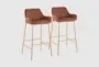 The Danny Gold + Camel Faux Leather Metal 30" Barstool Set of 2 is the ideal addition to your modern dining room or kitchen. These barstools offer a sleek bistro design with a luxurious feel thanks to their faux leather upholstery and painted steel frames. Perfect for any food prep and serving space, they provide both style and comfort.