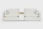 Introducing the Getaway White 117" 3 Piece Modular Loveseat with Storage Console, featuring Crypton Performance fabric. This modern loveseat offers a versatile design that seamlessly fits into any living room setting while providing exceptional comfort and convenience. The white fabric upholstery is both stylish and practical, boasting stain resistance to keep your loveseat looking pristine over time.