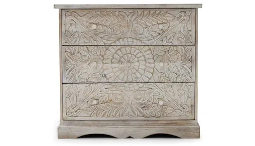 myia 3-drawer chest with carving