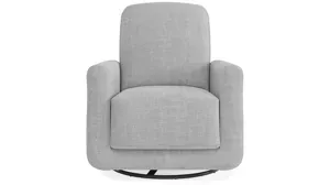 Step Swivel Chair with USB Charging Port does just that! Its smooth black metal swivel base and 360-degree swiveling range provide effortless mobility, allowing you to easily reach for essentials without disturbing your infant's slumber. Fashioned in modern style, the Step accent chair is in step with every contemporary living room or bedroom d_cor and features rounded padded armrests and backrest, soft-touch linen-look upholstery, and a plump 12-inch-deep foam-cushioned pocketed coil seat for maximum comfort. Superior support elements include a brawny plywood frame reinforced with sag-resist springs for lasting design. Assembly required.
