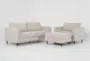 The Calais III Linen Modern 3 Piece Sofa Chair & Ottoman Set is a perfect addition to your living room. This modern set, featuring a sofa, chair, and ottoman, is upholstered in a soft linen-colored fabric, providing both comfort and style. Its 100% polyester material ensures durability and easy maintenance.