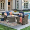 Sonoma Husk Outdoor Wicker with Cushions 4 Piece Loveseat Group 48 in D Sintered Fire Pit Table | Furnzy.com - Shop local furniture stores in one place