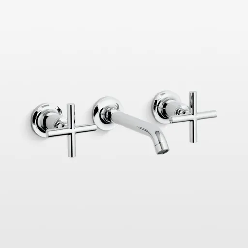 A Kohler faucet from our curated selection instantly transforms your bathroom, whether you're simply swapping out an old faucet or going for a total makeover with one of our bathroom vanities. Striking in polished chrome, the minimalist Purist wall-mounted sink faucet delivers high style and a clean look. The set provides streamlined water control with a 35-degree angled spout angle and easy-to-operate cross handles for independent regulation of hot and cold water.