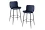 Enhance your dining room or kitchen with the Hunter Navy Quilted Velvet Metal Barstool Set. These barstools are designed to bring a touch of traditional style and comfort to your home. The navy quilted velvet upholstery adds a rich, luxurious feel, while the metal legs provide sturdy support.