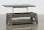 Our Jaxon Grey lift-top cocktail table updates one of our most popular rustic styles with a new finish and new features. Distinguished by all natural solid pine construction, it brings fresh color, unique texture and convenient functionality to your living room. Thanks to a clever lift-top design, you can read a book, work on your laptop, or eat comfortably in front of the TV. Shop coffee tables like this one and find the perfect design for your space.