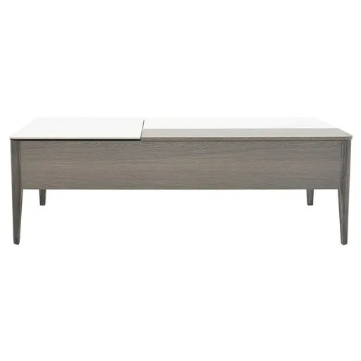 If you can't decide between style and convenience, the Monique Lift Top Coffee Table offers both. First of all, this coffee table is made of natural gray engineered wood with matte ceramic accents on the tabletop, so it's perfect for a modern living room. Two parts of the table lift up, so you can display accessories or make it easy to serve drinks and appetizers to your friends before your dinner party. Keeping them lifted allows you to use the compartments inside the table for storage of coasters, serving trays, and more!