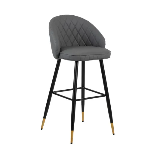 The Oliver Gray faux Leather Bar Stool set combines contemporary style with practical features to enhance any modern space. Each set includes two bar chairs with a sleek, arched back and low profile, offering a chic yet refined aesthetic. Crafted from eco-friendly vegan leather, the chairs deliver the luxurious look of leather without the maintenance, with intricate diamond tufting for added sophistication. The sturdy, tapered black iron legs provide excellent stability, resisting bending or breaking, and are accented with subtle gold detailing for a touch of elegance. Dual-purpose footrests ensure both added stability and a comfortable spot to rest your feet. A perfect blend of style and functionality, these bar chairs offer long-lasting comfort and timeless design—an excellent addition to any home or bar setting.