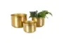 Enhance your living space with the 9" 7" 6" Gold Metal Indoor Outdoor Planter Set of 3 by CosmoLiving Cosmopolitan. These planters are inspired by sleek elegance and clean lines, offering a minimalistic design that exudes effortless luxury. Crafted from high-quality iron, this set is designed for durability and long-lasting use.