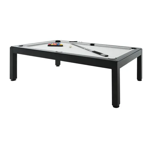 With the Jollity Black Outdoor Billiard/Pool Table, you’ll have even more excuses to come together. The flat surface is made of gray sunbrella fabric, while the rest is designed with black aluminum, making it perfect for indoor and outdoor spaces. This modern pool table comes with a set of billiard balls, a triangle, a brush, two pieces of chalk, and two composite cues, so you’ll have everything you need to set up and start playing. Plus, rubber bumpers keep the game running smoothly every time. A protective cover is also included.