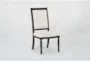 The Chapleau III Black + Beige Traditional Wood Dining Side Chair is a perfect addition to your dining room or kitchen. This armless chair features a spindle design and is made from Asian hardwood veneer and solid Asian hardwood, ensuring durability and timeless appeal. Its high back adds support and comfort, making it ideal for long meals and gatherings.