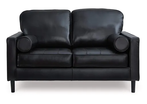The Bryceview loveseat embodies timeless mid-century elegance with its linear design, sleek track arms and tapered legs. Skillfully matched leather and faux leather upholstery adds a luxurious touch to the overall look. Experience endless style opportunities for today's living spaces.