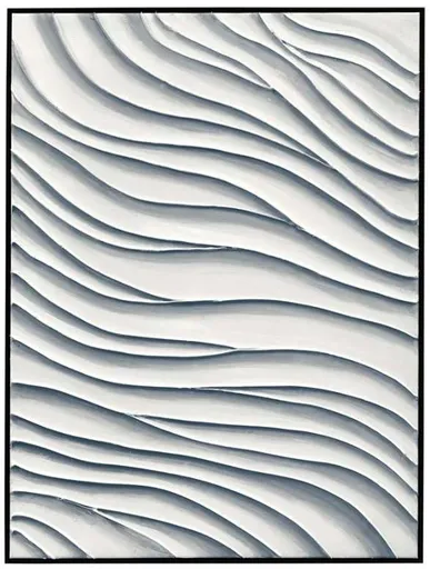 The Ripples framed canvas captures the essence of the oceans gentle waves, evoking a sense of calm and serenity. Its textured surface mimics the mesmerizing ripples, inviting you to lose yourself in the dance of light and shadow. Wrapped in a rich black frame.