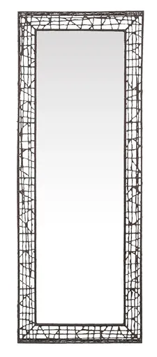The C U C Me collection plays with random translucent patterns framed within symmetrical boxes. Its wire frame is dipped into a vat of Salago fiber, forming interesting textures as it dries. Materials Salago fiber, Powder-coated steel, Mirror glass Dimensions 185 cm x 70 cm x 10 cm