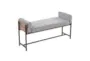 Enhance your entryway with the 45" Farmhouse Bench featuring grey upholstered seating, a wood frame, and black metal legs. This contemporary bench offers a perfect blend of style and comfort, making it a versatile addition to any bedroom, entryway, or living room.