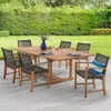 Hampton Driftwood Outdoor Wicker and Solid Teak 7 Piece Arm Dining Set 6787 x 47 in Extension Table
