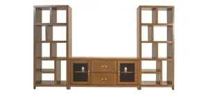 Divide and conquer with the Granthom 3-pc. wall unit crafted of solid poplar with birch veneers. The 60" TV console and pair of open towers enable you to customize your entertainment space. Wood-framed glass doors and see-through compartments add to the visual transparency of this flexible wall unit.