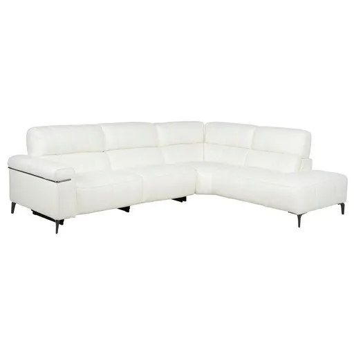 Sleek, snazzy and fully of sass, the Montreal Corner Sofa w/Right Chaise is just right for your living room. This gorgeous leather couch features polished stainless steel legs and telescopic headrest. Its built-in USB-A ports will keep you connected for hours, and its super comfortable feel will lend well for long lounge sessions or spur-of-the-moment naps.
