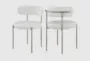 Enhance your dining experience with the Sagen White Vegan Leather + Boucle Upholstered Dining Chair Set. These armless chairs combine modern design with comfort, making them perfect for any dining room or kitchen. The combination of vegan leather and boucle fabric offers a stylish and cozy seating solution.