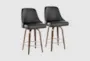 Introducing the Marcie 27" Counter Height Stool, designed to enhance your dining room with contemporary style and functionality. This set of 2 stools features a sleek walnut wood finish and black faux leather upholstery, complemented by chrome nailhead trim and a round chrome metal footrest. Perfect for modern kitchens and dining spaces, these stools offer a comfortable seating experience with a swivel design, making them both practical and stylish.