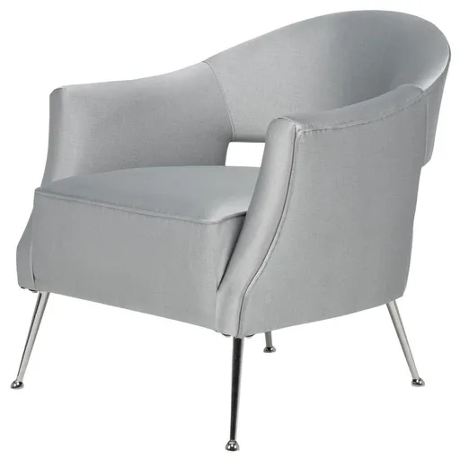 Strikingly silver with a shimmery shine you'll love, the Chelsea Gray Accent Chair is the perfect bold choice for any seating area. Made with microsuede fabric, this brilliant fancy chair features welt trim, polished metal legs and deep, wide seating for enhanced comfort while you lounge.
