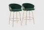 The Clarity 26" Emerald Velvet Metal Counter Height Stool Set of 2 is the perfect addition to your dining room or kitchen. These stools feature a stunning green velvet upholstery that adds a touch of sophistication to any space. The curved shape and tall design provide comfort and style for your seating needs.