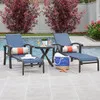 Get lost in the oversized comfort and structurally sound furniture of our exclusive Fairmont Collection. Feel the cool touch of the handmade aluminum frame, featuring a multi-step powder-coated and oven-baked clear coat finish. Each piece in this 3 piece chaise lounge set is constructed by laser welding to create fully welded and braced frames with zero weld marks. The chaise lounges feature high-back seating and are comprised of quick-drying, sling material with speciality yarns woven in twill and horizontal line patterns. The 24 in. round end table features a slat top design and provides extra surface area to keep personal items close by.