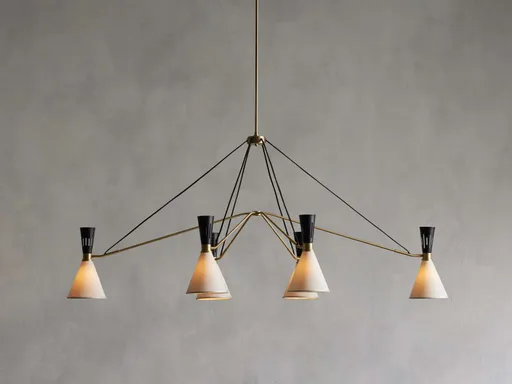 Inspired by an antique found in a Parisian flea market, our Ramsey Lighting Collection boasts a mid-century Italian sculptural silhouette. Hand-crafted by artisans in northern Italy, Ramsey features exposed, black-fabric cord supporting a beautiful brass frame. The fabric shades add the perfect contrast in texture emitting a soft, warm glow.