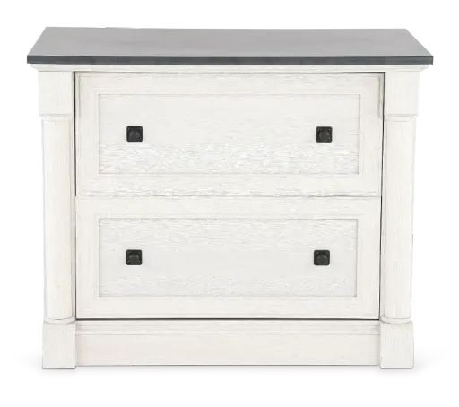 Keep your home office organized thanks to this sliding drawer file cabinet! The full-extension easy-glide drawers have an interlocking safety feature so that only one drawer at a time can be opened, helping to prevent tipping and smashed fingers. Easily hang your file folders for quick accessibility thanks to the inner drawer file guides. The fresh white finish accents the faux stone top and metal hardware for a classic style that easily fits with any home office decor. This piece stands strong on its own, or pair it with the rest of our Palladia collection for a full home office design! Customer Assembly Required
