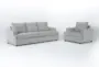 Bonaterra Dove Grey Fabric 2 Piece Queen Memory Foam Sleeper Sofa Bed & Armchair Set | Loose Reversible Back