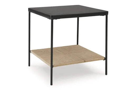 Seeking something outside the ordinary? Look no further than the casual mixed-media Minrich accent table. Its impressive black marble top and natural jute bottom shelf give the eclectic design that much more interest. Exuding a sense of ease that's sure to please, it's just the spot for displaying photos or decor accents.