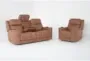 Zachary Saddle Brown 2 Piece Power Zero Gravity Reclining Sofa & Recliner Set with Power Headrest Heat Massage Drop Down Tray Wireless Charging Cupholders LED Lights & USB