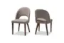 Enhance your dining experience with the West Light Grey Fabric Upholstered & Walnut Wood Dining Chair Set Of 2. These modern chairs feature a mid-century design, combining light grey fabric upholstery with solid rubberwood legs finished in walnut. The bowed, open chairback adds a touch of elegance and comfort to your dining space.