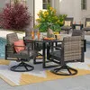 Chelsea Textured Black Aluminum and Weathered Teak Outdoor Wicker Concealed Cushions 5 Piece Swivel Dining Set 52 in D Table | Furnzy.com - Shop local furniture stores in one place