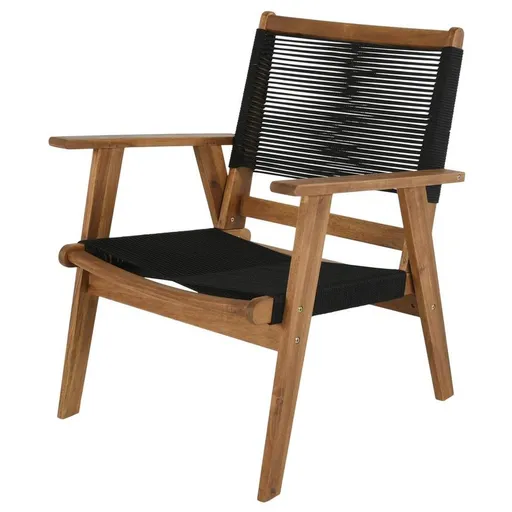Comfortable and stylish, the Laguna Black Accent Chair has it all. Made with acacia wood and featuring rope strap accents, this chair offers just the modern look your space needs. It's water resistant, making it suitable for indoor and outdoor use. Consider this chair alongside a matching coffee or end table in the garden or on the patio.