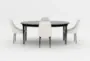 Transform your dining space with the Austen Black 54-72" Round To Oval Dining Table paired with the Nora Ivory Boucle Side Chair Set for 4. This traditional set brings together a versatile black wood table that extends from round to oval, and four comfortable ivory boucle fabric chairs. Perfect for any dining room or kitchen, this set combines functionality with timeless style.