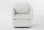 Introducing the Chadwick White Porcelain Swivel Accent Chair with Arms; a striking addition to your living room. This chair combines functionality and style with its swivel mechanism and comfortable arms. The soft porcelain color and textured detailing make it a versatile piece that complements any contemporary or modern setting.