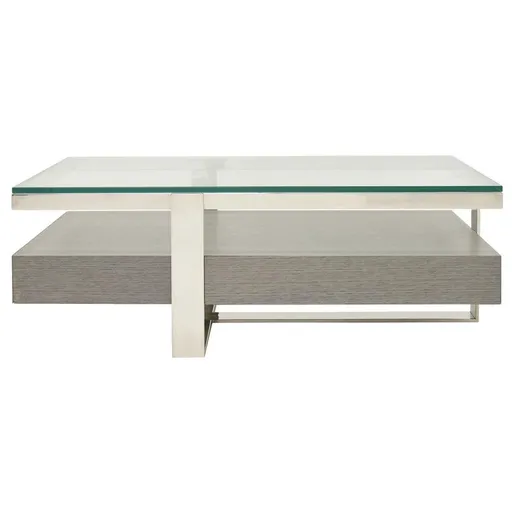 Bring a classy type of style to your living room with the Calypso Gray Coffee Table. A polished stainless steel frame surrounds the clear tempered glass top with a flat polished edge which is placed above a natural gray engineered wood drawer, creating a glossy and smooth look that highlights the clean modern design. Open display space is available for any of your accessories.
