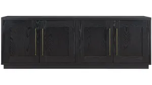 Combine functionality and classic transitional design with the modern Smith TV Stand. Its rich wood tone creates a warm neutral palette that will blend seamlessly into any color scheme, while its classic styling pairs perfectly with the existing design inspiration of your living room, den, or game room. This solid-backed stand features two large enclosed cabinets with sleek brass-finished hardware. Cable management cut-outs and adjustable inner shelves help keep your media storage and consoles organized.