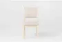 The Georgiana Natural + Cream Upholstered Performance Fabric Dining Chair is a stylish addition to any dining room. Its modern design features a comfortable back and armless structure, making it both functional and aesthetically pleasing. The chair's white sand color and wood veneer material add a touch of sophistication to your dining space.